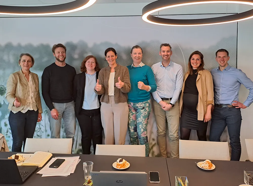 Het schrijfteam bij de goedkeuring op de snelle toets
